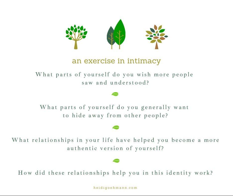 While we each must lay that identity formation foundation before we can truly be intimate with others, as we grow, we each must also be willing to be intimate in order to understand ourselves better.